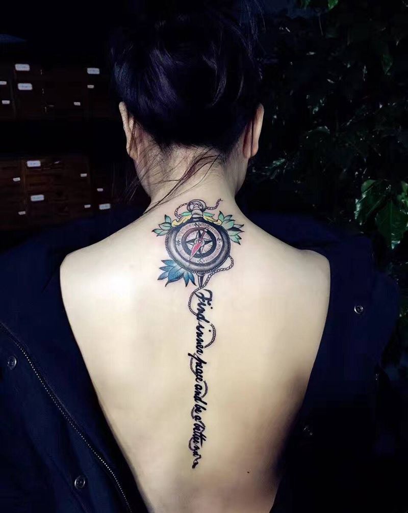 指南针纹身图片_成品背部欧美静物字符纹身图案