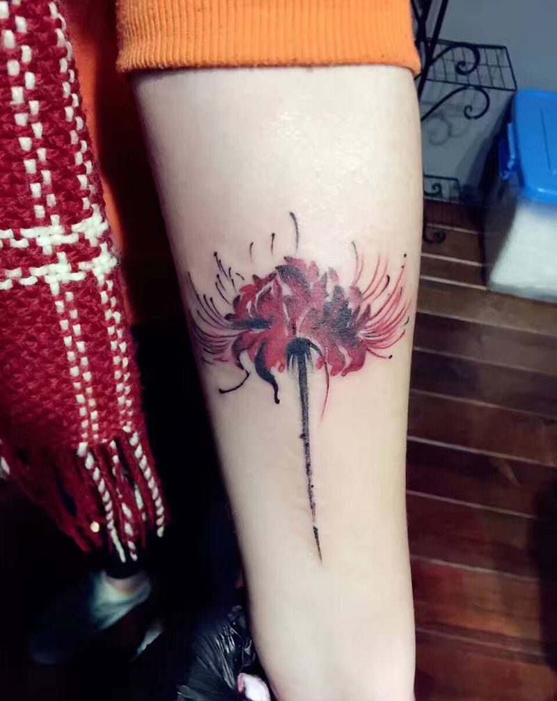彼岸花纹身图片_成品手臂写实植物纹身图案