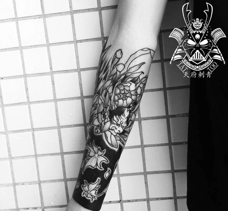 般若纹身图片_手臂成品传统鬼神纹身图案