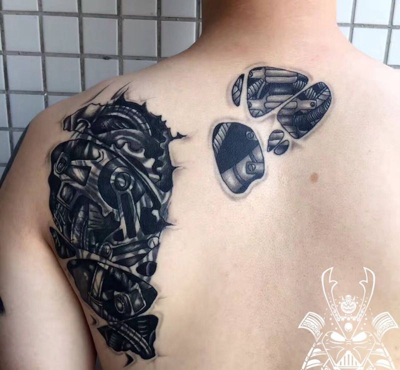 当前位置: 首页 >四川省成都市纹身店-天府刺青工作室纹身图案>机械 遮盖纹身图片