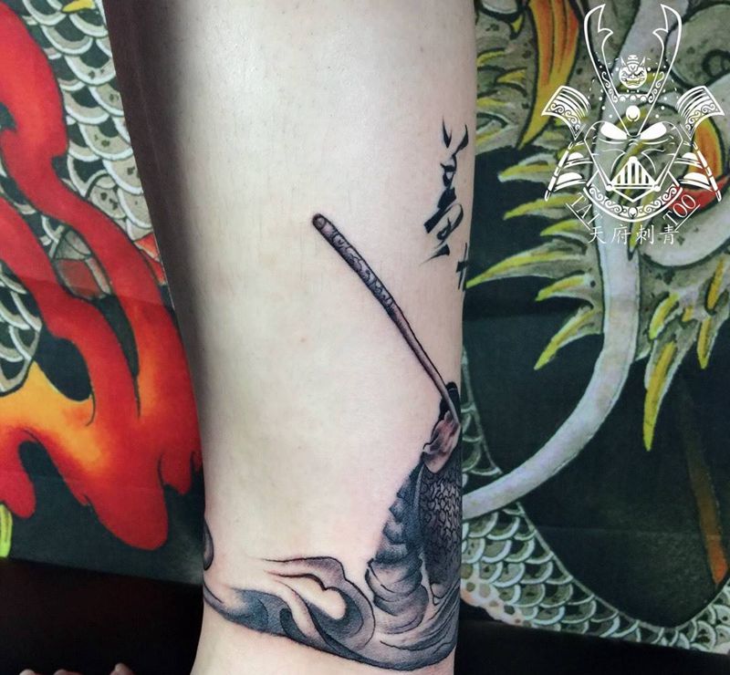 当前位置: 首页 >四川省成都市纹身店-天府刺青工作室纹身图案>至尊宝纹身图片_成品脚部传统人物纹身图案