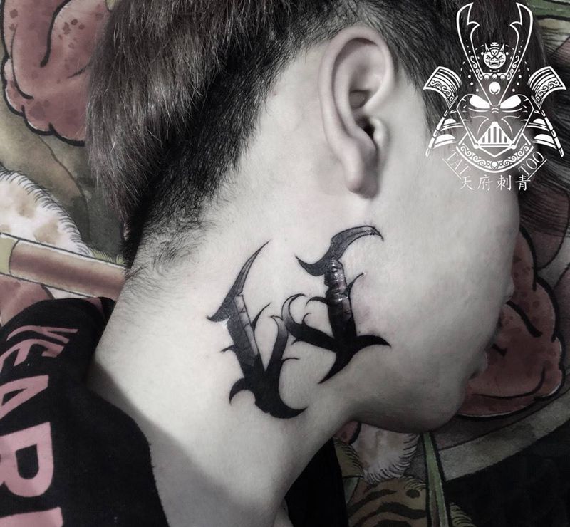 当前位置: 首页 >四川省成都市纹身店-天府刺青工作室纹身图案>遮盖纹身图片_成品颈部欧美字符纹身图案