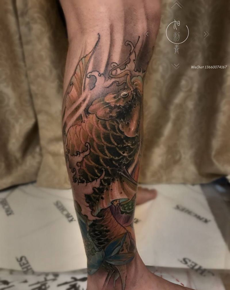 鲤鱼 遮盖作品纹身图片_成品腿部脚部传统鲤鱼纹身图案