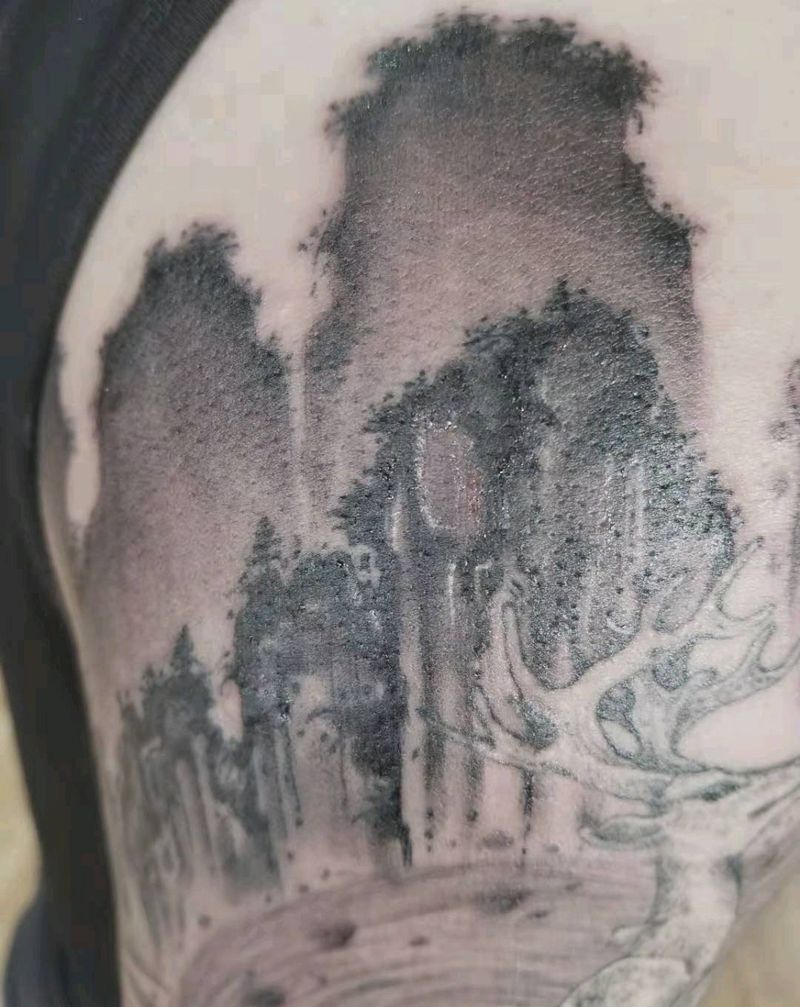 当前位置: 首页 >四川省成都市纹身店-成都喜欢纹身商店纹身图案>添加水墨背景纹身图片_水墨纹身图案