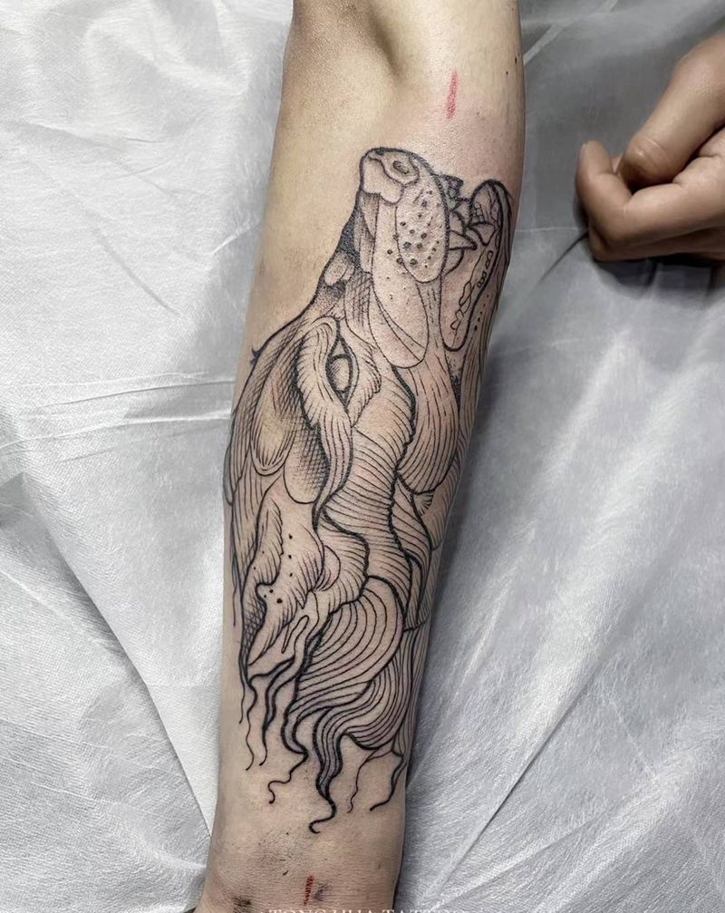 当前位置: 首页 >四川省成都市纹身店-桐花刺青纹身图案>狼头纹身图片_手臂Old School纹身图案