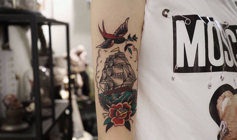 当前位置: 首页 >四川省成都市纹身店-部首刺青纹身图案>Oldschool帆船燕子纹身图片_手臂Old School帆船 燕子纹身图案
