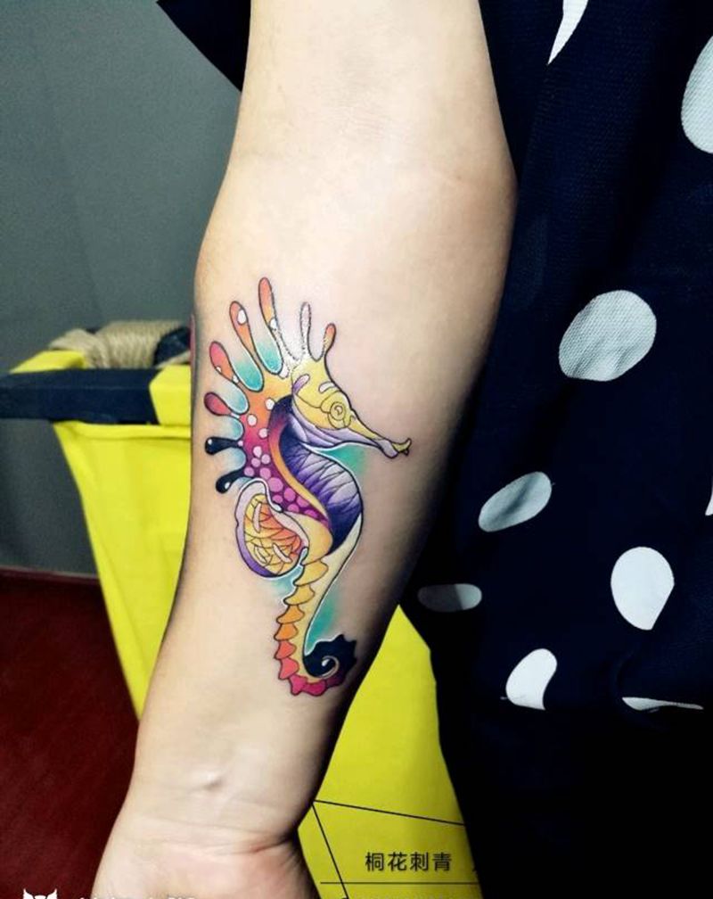 当前位置: 首页 >四川省成都市纹身店-桐花刺青纹身图案>海马纹身图片_手臂欧美动物成品纹身图案
