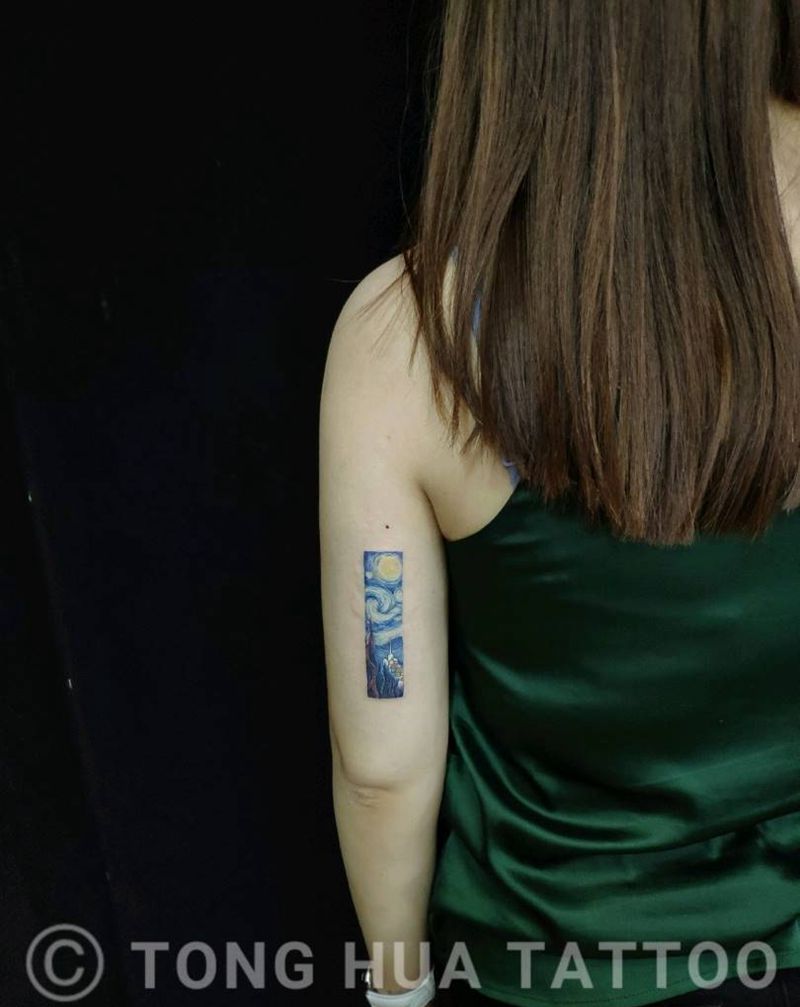 当前位置: 首页 >四川省成都市纹身店-桐花刺青纹身图案>梵高纹身图片_手臂水彩纹身图案