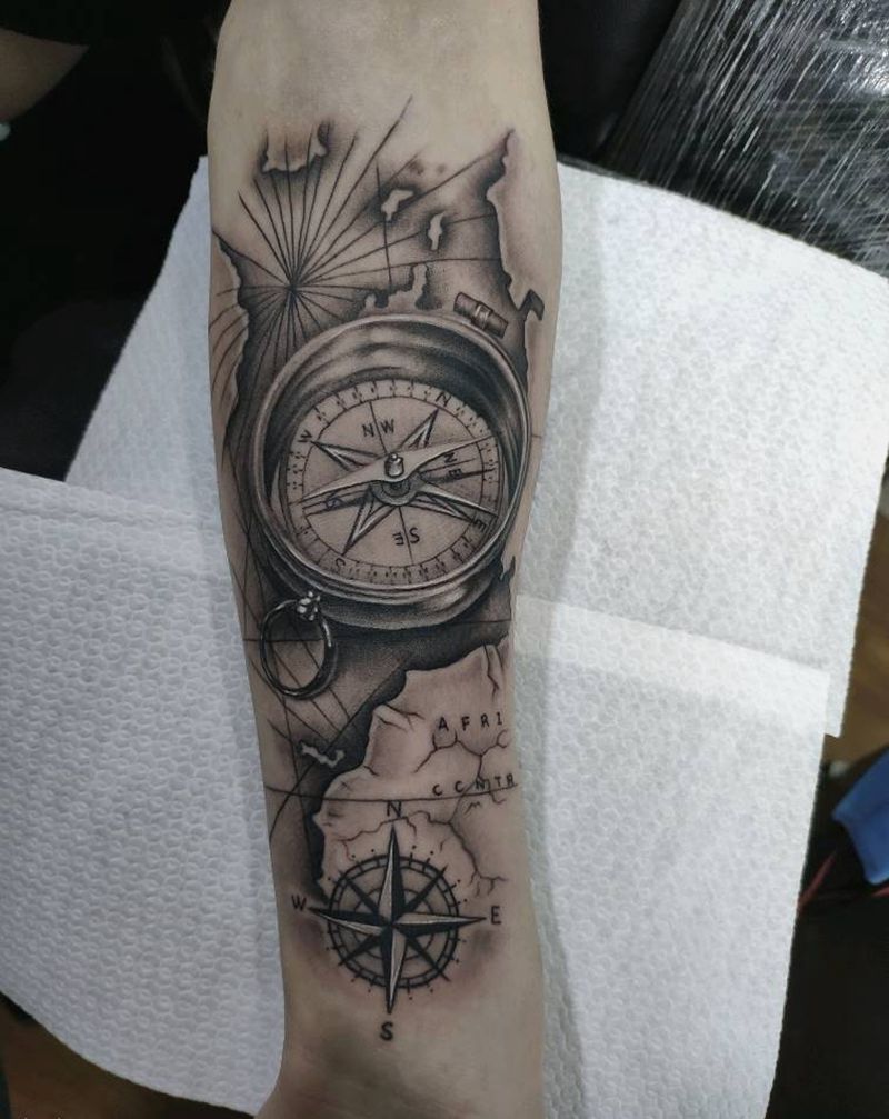 当前位置: 首页 >四川省成都市纹身店-桐花刺青纹身图案>指南针纹身图片_手臂欧美写实纹身图案