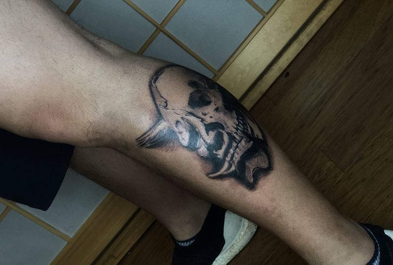 当前位置: 首页 >四川省成都市纹身店-黑川刺青纹身图案>般若面具&skull纹身图片_腿部欧美写实般若骷髅纹身图案