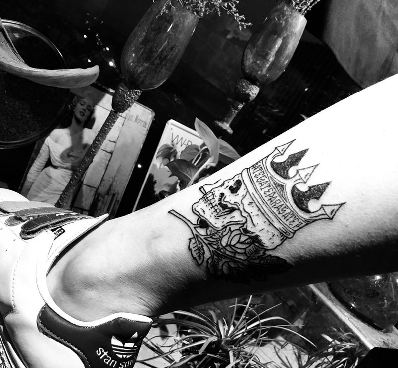 • T包小腿吹火男+阿多福纹身图片_腿部老传统新传统吹火男阿