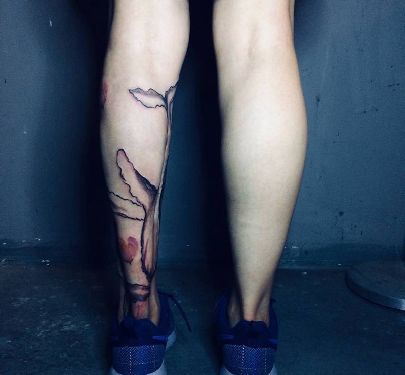 • T网红王老大花腿龙纹身图片_腿部新传统纹身图案