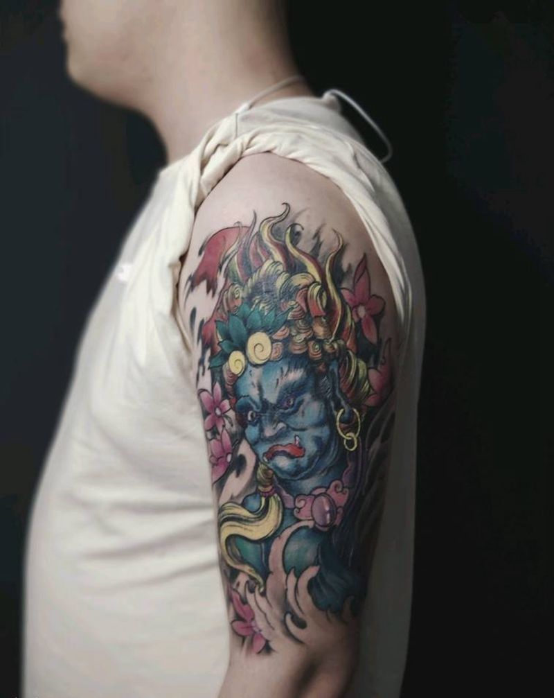 彩色不动明王纹身图片