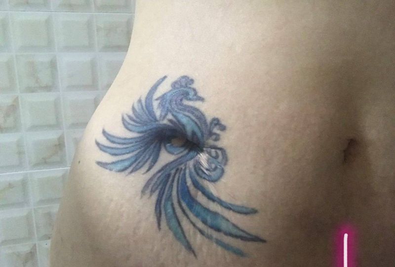 遮盖凤凰纹身图片_腹部新传统水彩凤凰遮盖纹身图案