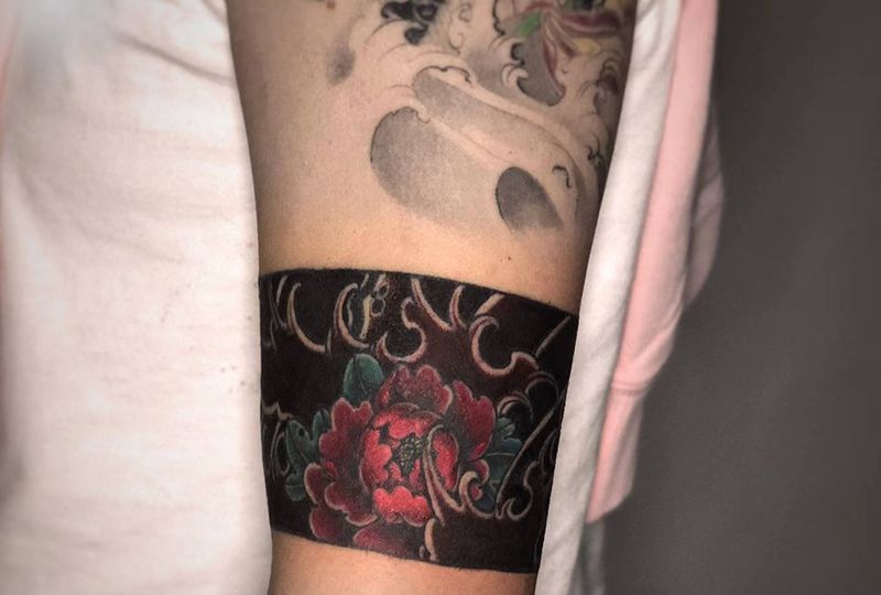 当前位置: 首页 >四川省成都市纹身店-墨善坊刺青纹身图案>传统|手环纹身图片_手臂老传统牡丹水浪纹身图案