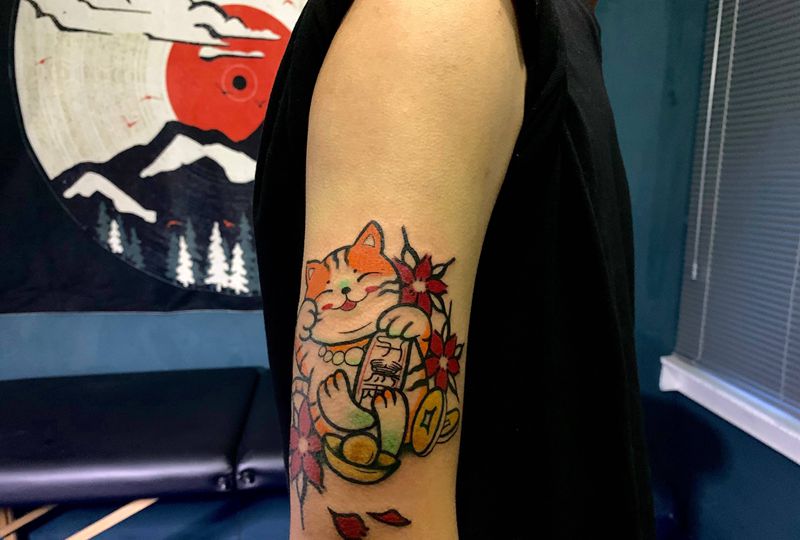 招财猫纹身图片_手臂手部Old School卡通纹身图案