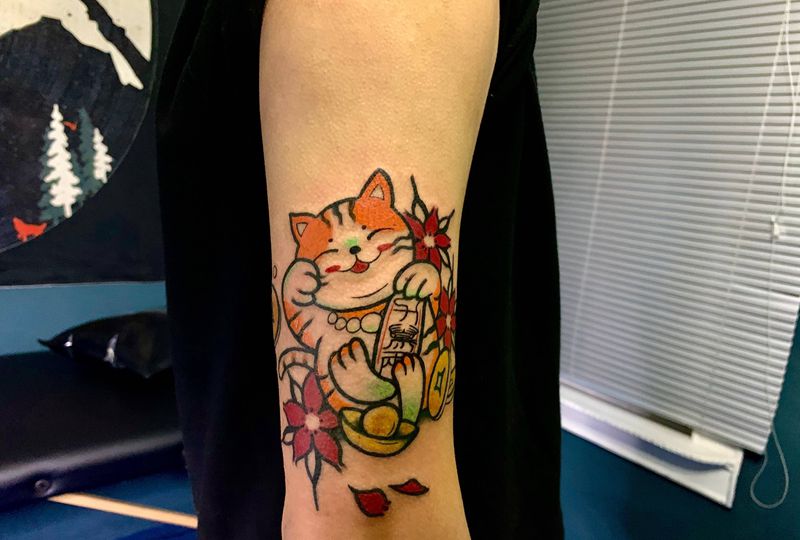 招财猫纹身图片_手臂手部Old School卡通纹身图案