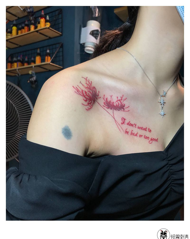 当前位置: 首页 >四川省成都市纹身店-怪兽刺青纹身图案>彼岸花纹身图片_肩部彼岸花字母纹身图案