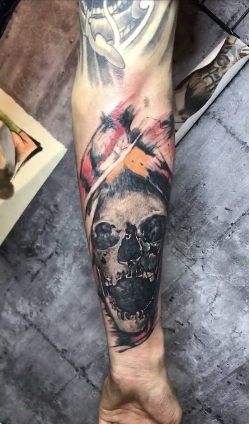 当前位置: 首页 >四川省成都市纹身店-西安青舍纹身tattoo工作室纹身图案>骷髅最爱纹身图片_手臂欧美写实水彩纹身图案