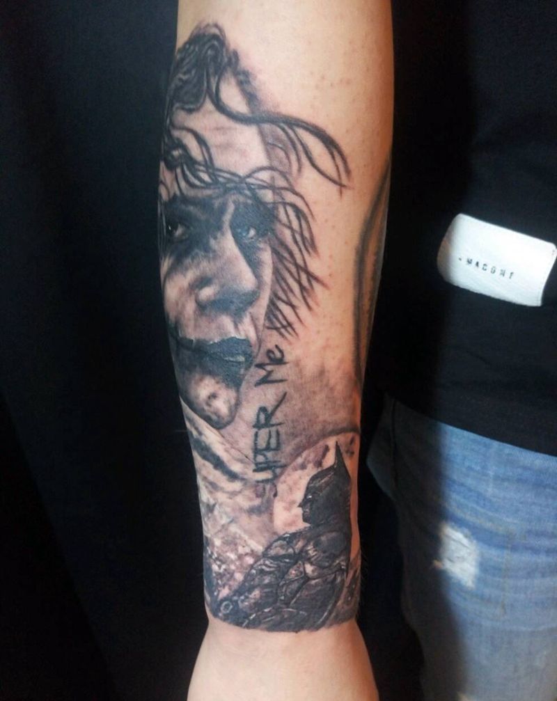 当前位置: 首页 >四川省成都市纹身店-西安青舍纹身tattoo工作室纹身图案>小丑 蝙蝠侠纹身图片