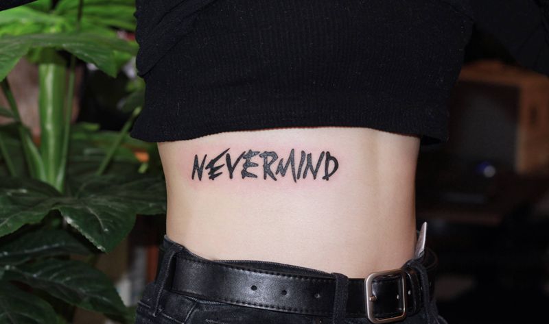 当前位置: 首页 >四川省成都市纹身店-怪咖纹身工作室纹身图案>Nevermind纹身图片_腰部纹身图案
