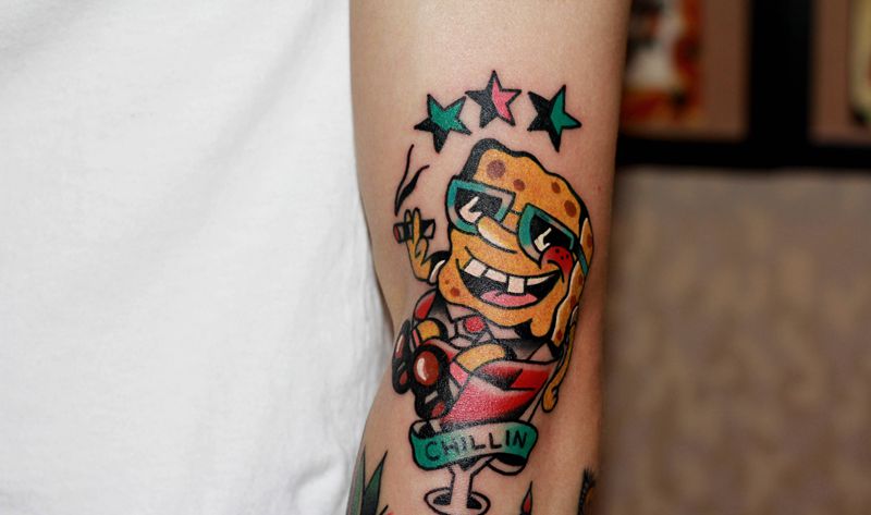 当前位置: 首页 >四川省成都市纹身店-怪咖纹身工作室纹身图案>海绵宝宝纹身图片_手臂手部Old SchoolNew School海绵宝宝卡通纹身图案