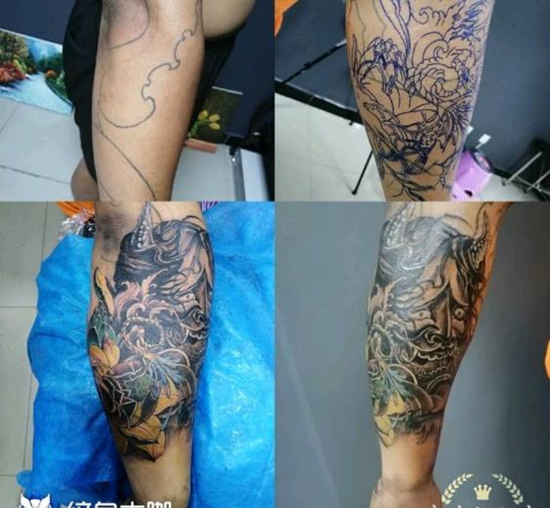 • T网红王老大花腿龙纹身图片_腿部新传统纹身图案