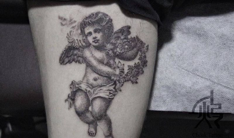 厄洛斯纹身图片_手臂点刺纹身图案
