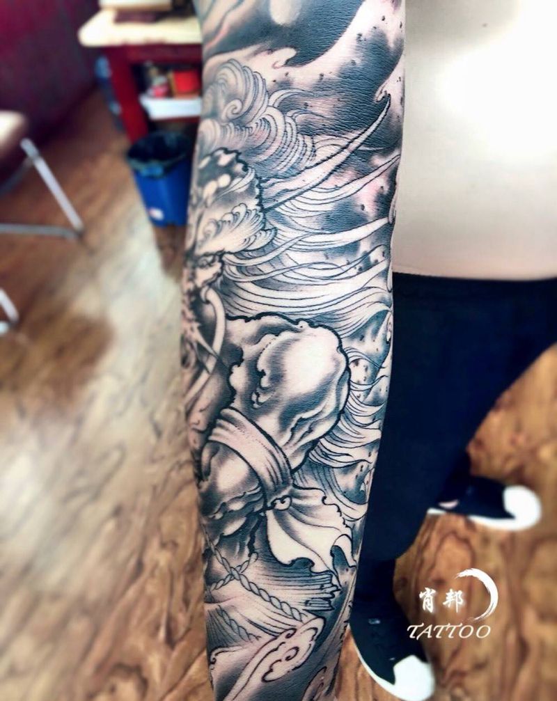 当前位置: 首页 >四川省成都市纹身店-肖邦刺青纹身图案>花臂纹身图片_成品手臂传统鬼神纹身图案