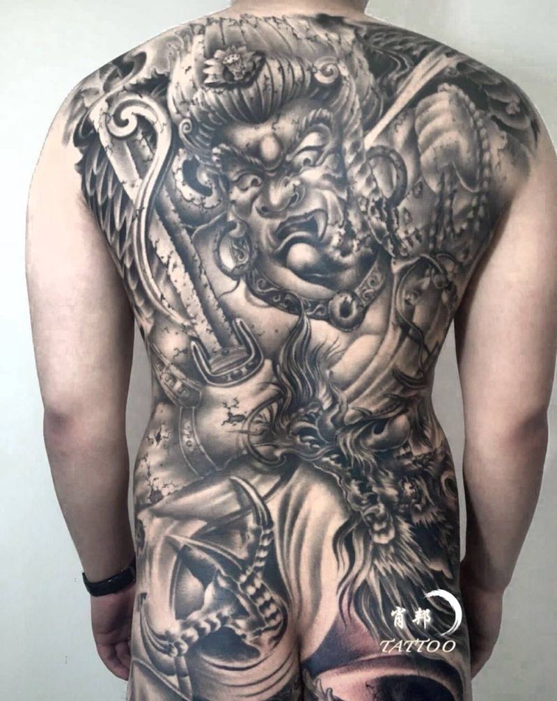 黑灰满背纹身图案