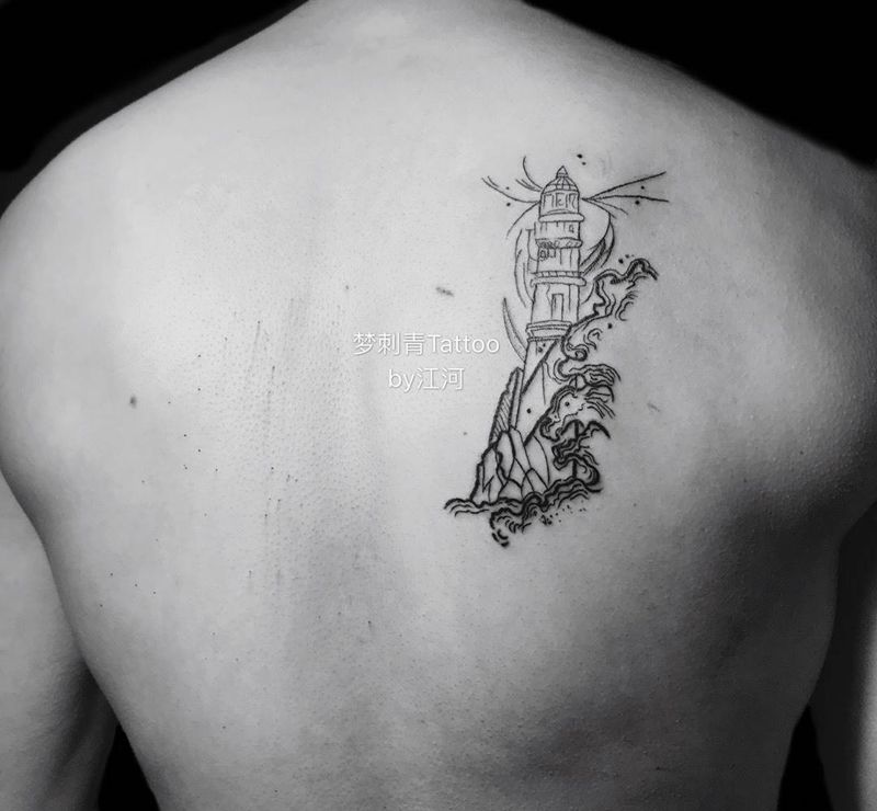 当前位置: 首页 >四川省成都市纹身店-T-one.ᴛᴀᴛᴛᴏᴏ纹身图案>灯塔纹身图片_成品背部清新几何静物纹身图案