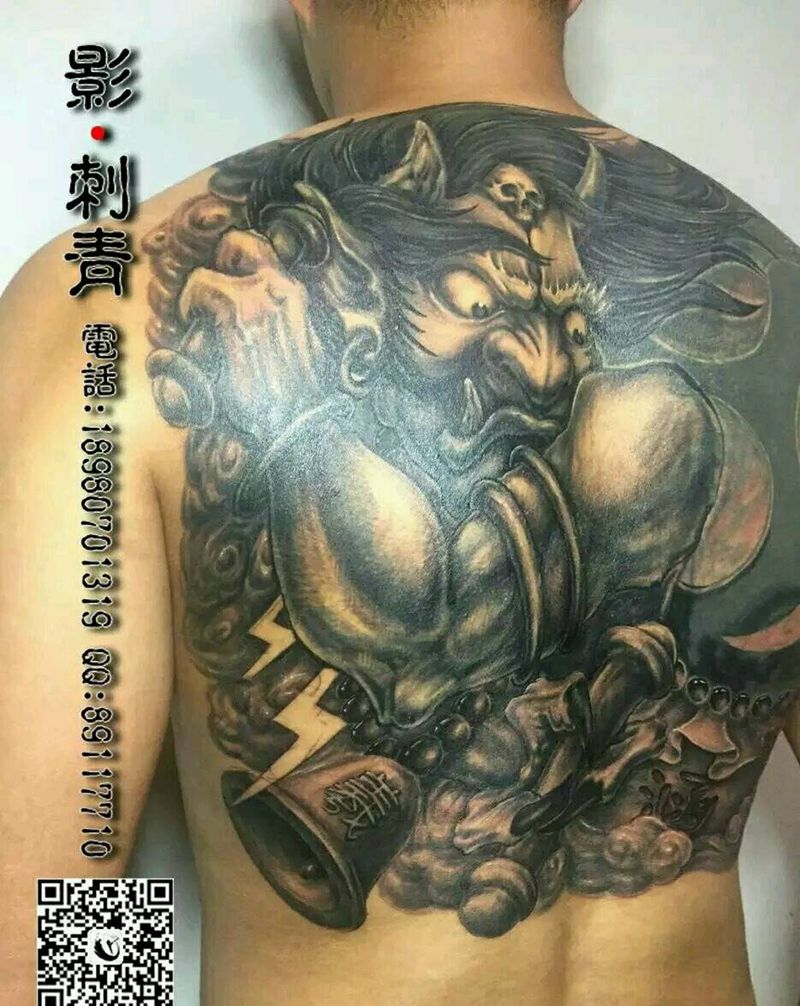 黑灰满背纹身图案