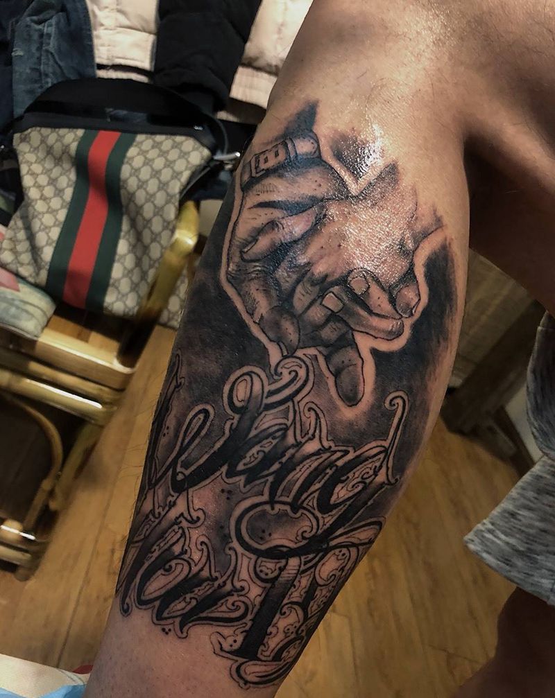 当前位置: 首页 >四川省成都市纹身店-骄虫刺青纹身图案>花体字➕素描纹身图片_腿部欧美写实纹身图案