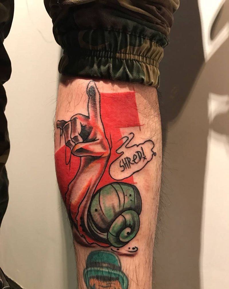 • T包小腿吹火男+阿多福纹身图片_腿部老传统新传统吹火男阿