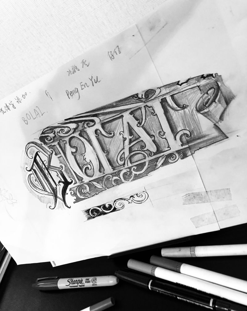当前位置: 首页 >四川省成都市纹身店-骄虫刺青纹身图案>花体字纹身图片_手臂手部花体字欧美写实纹身图案
