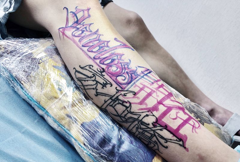 当前位置: 首页 >四川省成都市纹身店-骄虫刺青纹身图案>又没做完纹身图片_腿部花体字纹身图案