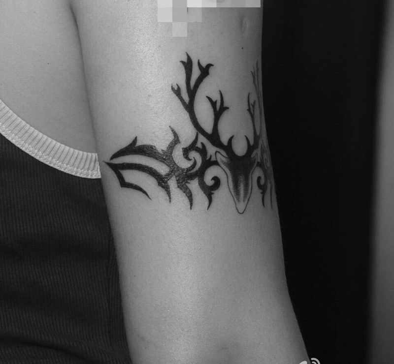 当前位置: 首页 >四川省成都市纹身店-西皮士纹身工作室纹身图案>鹿图腾纹身图片_成品手臂欧美动物图腾西大門纹身图案
