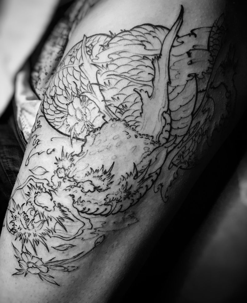 龙割线完成。待续纹身图片_腿部纹身图案