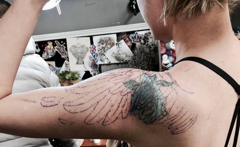 遮盖旧图纹身图片_成品肩部纹身图案