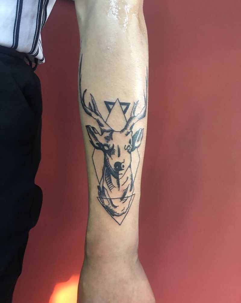 当前位置: 首页 >四川省成都市纹身店-浮世绘刺青工作室纹身图案>鹿纹身图片_动物成品手臂纹身图案
