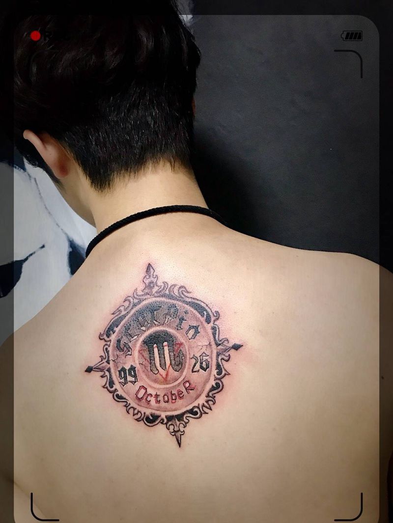 当前位置: 首页 >四川省成都市纹身店-纹艺青年刺青工作室纹身图案>天蝎座纹身图片_成品颈部欧美写实字符原创纹身图案