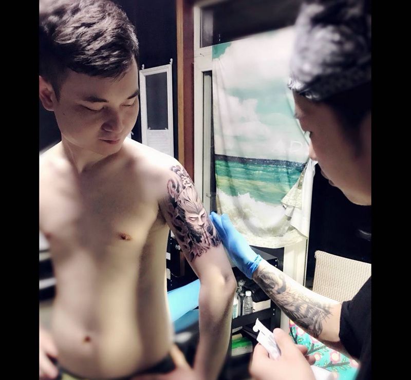 当前位置: 首页 >四川省成都市纹身店-纹艺青年刺青工作室纹身图案>、斗战胜佛-信仰纹身图片_成品手臂传统人物纹身图案
