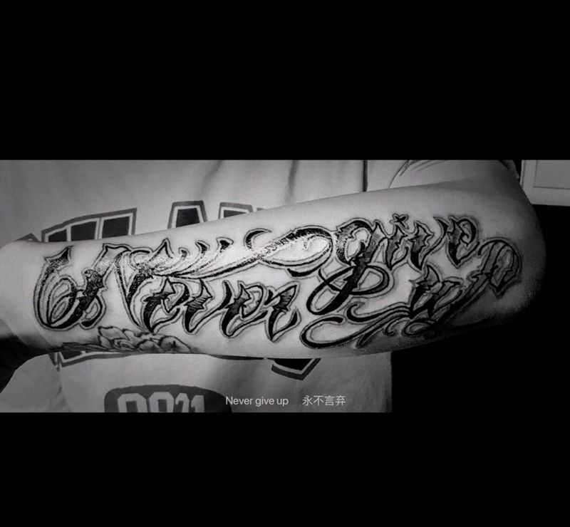 Never give up纹身图片_成品手稿欧美字符原创纹身图案