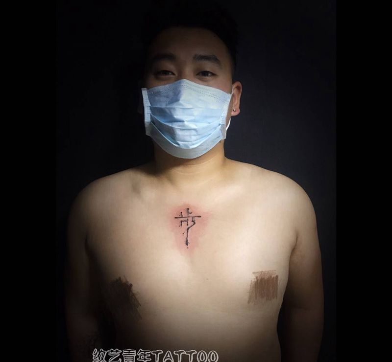 当前位置: 首页 >四川省成都市纹身店-纹艺青年刺青工作室纹身图案>写意-步纹身图片_成品颈部胸部原创字符写意纹身图案