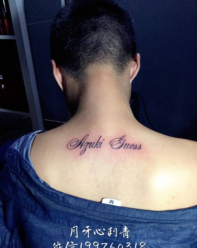 当前位置: 首页 >四川省成都市纹身店-月牙心刺青纹身图案>英文纹身图片_成品背部清新字符英文语言纹身图案