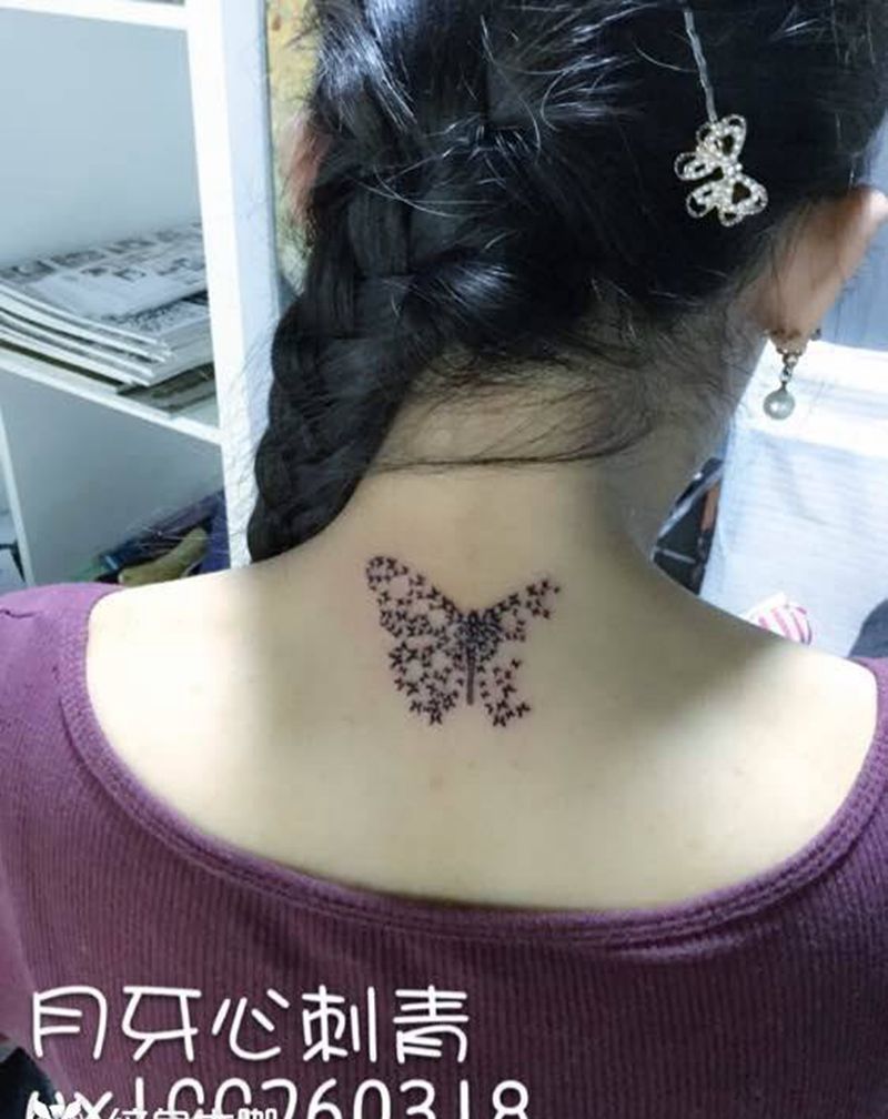 当前位置: 首页 >四川省成都市纹身店-月牙心刺青纹身图案>蝴蝶纹身图片_成品颈部清新动物蝴蝶纹身图案