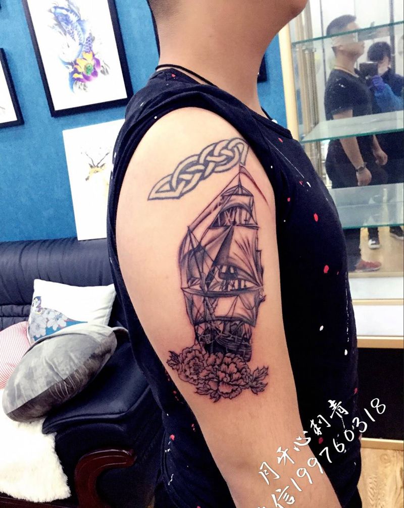 帆船纹身图片_成品手臂欧美清新静物船帆船纹身图案