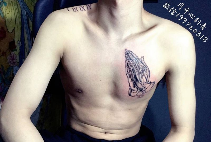 祈祷之手纹身图片_成品胸部写实欧美人物手祈祷祝福纹身图案