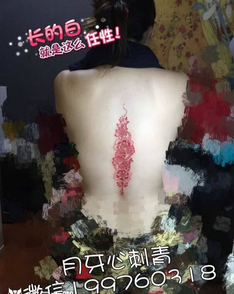 当前位置: 首页 >四川省成都市纹身店-月牙心刺青纹身图案>脊柱之花纹身图片_成品背部传统植物泰国纹身图案