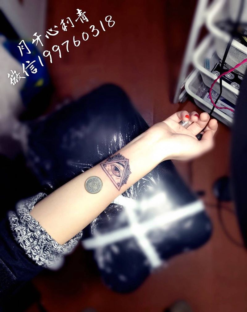 上帝之眼纹身图片_成品手部欧美清新几何上帝之眼精致小图mini纹身图案